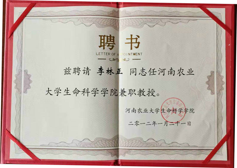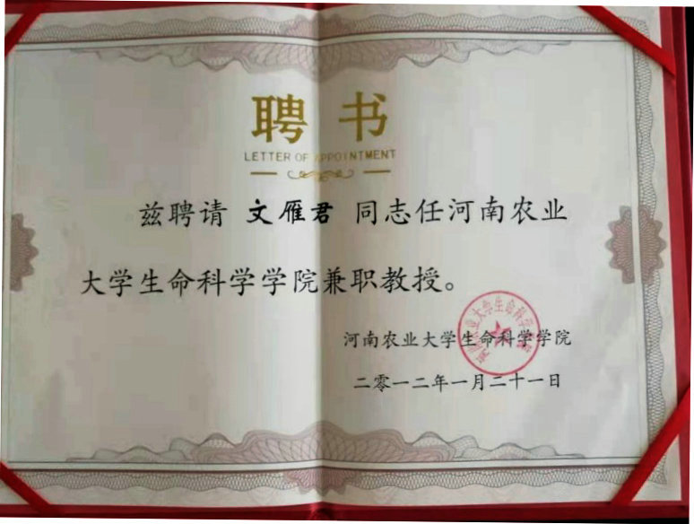 河南農(nóng)業(yè)大學生命科學學院聘請文雁君、李林正為兼職教授