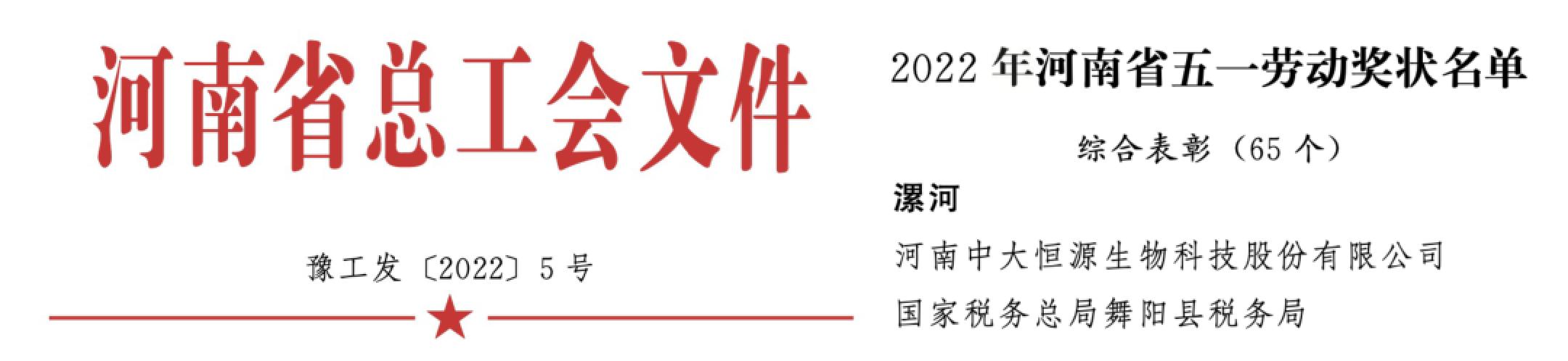 中大恒源喜獲“河南省五一勞動(dòng)獎(jiǎng)狀”殊榮
