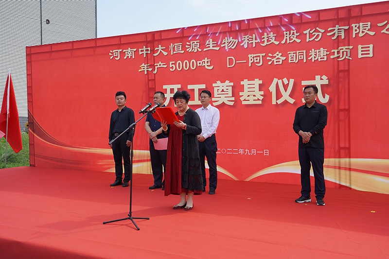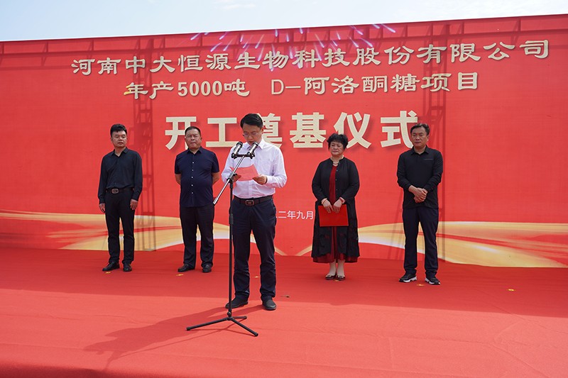 D-阿洛酮糖項目開工奠基儀式圓滿完成 作者:中大恒源 來源: 日期:2022-09-05 08:54:14 9月1日中大恒源公司舉行D-阿洛酮糖項目開工奠基儀式,項目總投資1.6個億,建設周期8個月。臨潁縣縣委副書記、縣長李俊偉、縣委常委李紅偉、經(jīng)開區(qū)管委會副主任邢培忠、中大恒源董事長文雁君出席儀式并培土奠基。中大恒源董事長文雁君介紹項目情況臨潁縣縣委副書記、縣長李俊偉致辭儀式最后眾領(lǐng)導共同為D-阿洛酮糖項目培土奠基 關(guān)鍵詞: