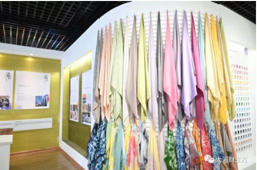 穿過(guò)展廳入口的七彩走廊,一個(gè)充滿童話色彩的世界展現(xiàn)在記者眼前。五彩斑斕的色素原料及成品,五顏六色的糖果、糕點(diǎn)和飲料,純植物色素印染、頗有些“莫蘭迪色”風(fēng)味的衣服與絲巾……