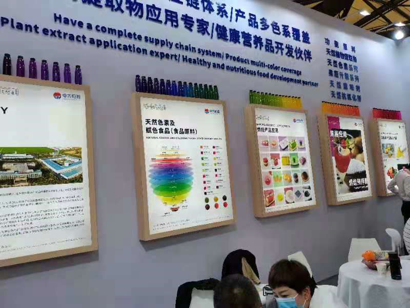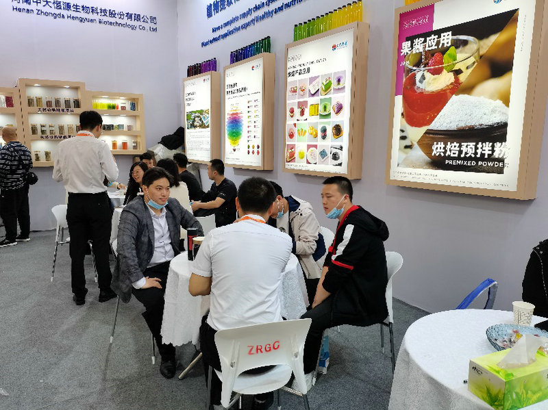 2021年4月27-30日,河南中大恒源生物科技股份有限公司參加在上海新國際博覽中心舉辦的第23屆中國國際焙烤展覽會。公司以“擁有完善的供應(yīng)鏈體系,產(chǎn)品多色系覆蓋,植物提取物應(yīng)用專家,健康營養(yǎng)品開發(fā)伙伴”為主題,展出了健康食品原料、健康保健產(chǎn)品、天然色素及賦色食品、烘培產(chǎn)品、糖果/巧克力產(chǎn)品、飲料類產(chǎn)品及應(yīng)用解決方案。展廳內(nèi)人頭攢動(dòng),客流不斷,或饒有興趣的品評產(chǎn)品,或深入洽談合作事宜。